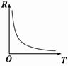 3.热敏电阻器的用途十分广泛,主要应用于:①利用电阻-温度特性来测量温度、控制温度和元件、器件、电路的温度补偿;②利用非线性特性完成稳压、限幅、开关、过流保护作用;③利用不同介质中热耗散特性的差异测量流量、流速、液面、热导、真空度等;④利用热惯性作为时间延迟器. 知识点二、热敏电阻 1.光敏电阻的特性:光敏电阻能够把光照强弱这个光学量转换为电阻这个电学量.光敏电阻的电阻随光照的增强而减小. 2.光敏电阻的工作原理:光敏电阻在被阳光照射时电阻发生变化,原因是构成物质为半导体材料,无光照时,载流子极少,导电性能不好,电阻增大,随光照的增强,载流子增多,导电性能变好,电阻减小. 3.热敏电阻及其特性 ⑴热敏电阻:热敏电阻由半导体材料制成,其电阻值随温度的变化明显,温度升高电阻减小,如图所示为某一热敏电阻的电阻值随温度变化的特性曲线.
