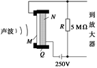 知识点七、话筒的工作原理 1.电容式话筒工作原理:电容式话筒的保真度好.如图所示,Q是绝缘支架,薄金属膜M和固定电极N形成一个电容器,被直流电源充电.当声波使膜片振动时,电容发生变化,电路中形成变化的电流,于是电阻R两端就输出了与声音变化规律相同的电压.