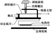知识点八、温度传感器的应用 1.双金属片的应用:在温度传感器中,有一种双金属传感器,它把两种不同热膨胀系数的金属片贴合在一起,制成一条双金属片,温度变化时,因为两种金属片伸长不一样而发生弯曲,使电路的开关闭合或断开.在日光灯启动器和电熨斗中都有这种双金属传感器. 2.电熨斗的工作原理:如图所示,这是一个电熨斗的内部图,熨烫衣物时需要一定的温度.