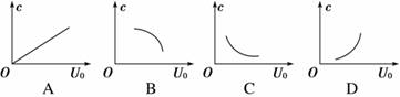 A.当传送带上没有物品挡住由A射向B的光信号时,光敏电阻的阻值变小,电压表读数变小 B.当传送带上没有物品挡住由A射向B的光信号时,光敏电阻的阻值变大,电压表读数变大 C.当传送带上有物品挡住由A射向B的光信号时,光敏电阻的阻值变小,电压表读数变小 D.当传送带上有物品挡住由A射向B的光信号时,光敏电阻的阻值变大,电压表读数变大 解析 B是光敏电阻,其阻值随光照强度的增大而减小。当没有物品挡住光时,光射向B,B的阻值减小,其电流变大,由U=E-Ir知电压表读数变小,A正确,B错误;有物品时,光被挡住,B的阻值增大,电流减小,电压表读数变大,C错误,D正确。 答案 AD 7.氧化锡传感器主要用于汽车尾气中一氧化碳浓度的检测,它的电阻随一氧化碳浓度的变化而变化.在如图甲所示的电路中,不同的一氧化碳浓度对应着传感器的不同电阻,这样,电压表的指针位置就与一氧化碳浓度有了对应关系,观察电压表指针就能判断一氧化碳浓度是否超标.有一种氧化锡传感器,其技术资料中给出的是电导(即电阻的倒数)—CO浓度曲线,如图乙所示.在下列表示一氧化碳浓度c与电压表示数U0之间关系的图象中正确的是( )