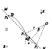 25.(19分)如图,与水平面成45°角的平面MN将空间分成I和II两个区域。一质量为m、电荷量为q(q>0)的粒子以速度v0从平面MN上的P0点水平向右射入I区。粒子在I区运动时,只受到大小不变、方向竖直向下的电场作用,电场强度大小为E;在II区运动时,只受到匀强磁场的作用,磁感应强度大小为B,方向垂直于纸面向里。求粒子首次从II区离开时到出发点P0的距离。粒子的重力可以忽略。