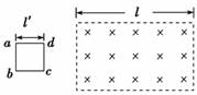 解析 磁场的变化引起磁通量的变化,从而使闭合电路产生感应电流. 由题意,磁场随时间均匀变化,设磁场的变化率为,a的半径为r,则b的半径为2r,线圈导线单位长电阻为R0. 线圈a的电阻为Ra=2πrR0,线圈b的电阻为 Rb=4πrR0.因此有Rb=2Ra. 当线圈a在磁场中时,a相当于电源,根据法拉第电磁感应定律,电动势为Ea=πr2, 当线圈b在磁场中时,b相当于电源,所以,Eb=π(2r)2=4Ea, U是a为电源时的路端电压,由闭合电路欧姆定律,U=Rb, 设Ub是b为电源时的路端电压,同理有Ub=Ra,将上面各式联立解得:Ub=2U. 答案 2U 12.匀强磁场的磁感应强度B=0.2 T,磁场宽度l=3 m,一正方形金属框边长ad=l′=1 m,每边的电阻r=0.2 Ω,金属框以v=10 m/s的速度匀速穿过磁场区,其平面始终保持与磁感线方向垂直,如下图所示.求: