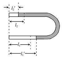 (2)(10分)在两端封闭、粗细均匀的U形细玻璃管内有一股水银柱,水银柱的两端各封闭有一段空气。当U形管两端竖直朝上时,左、右两边空气柱的长度分别为l1=18.0